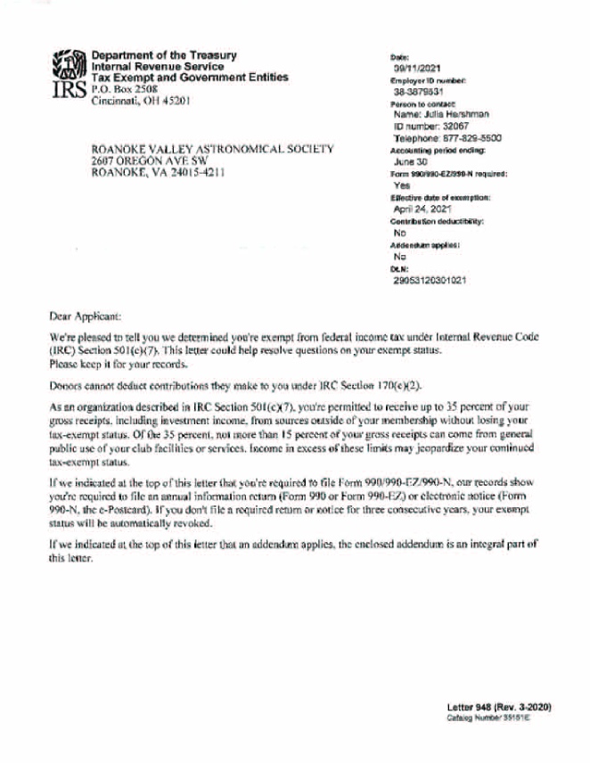 Roanoke Valley Astronomical Society