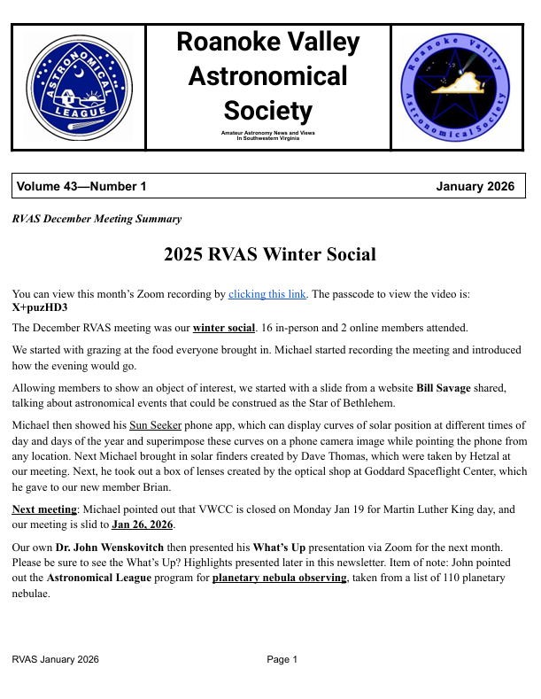 RVAS January 2026 Newsletter